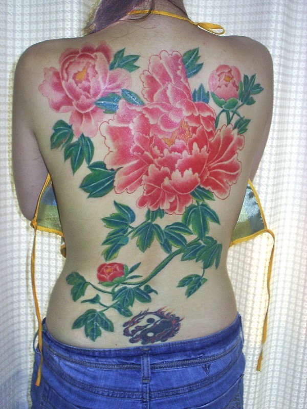 红色花朵纹身图片_后背纹身图案大全_纹身图吧