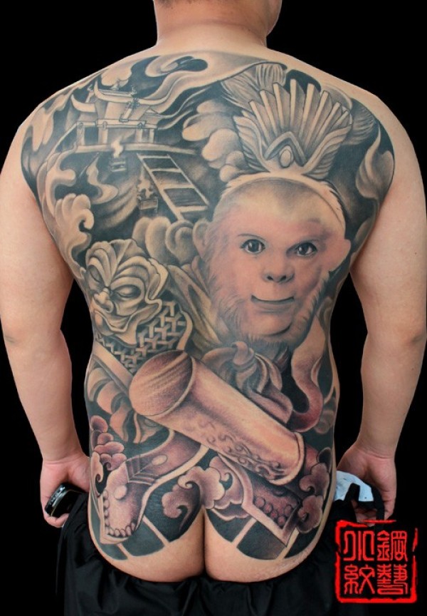 手持金箍棒的悟空图形_后背纹身图案大全_纹身图吧