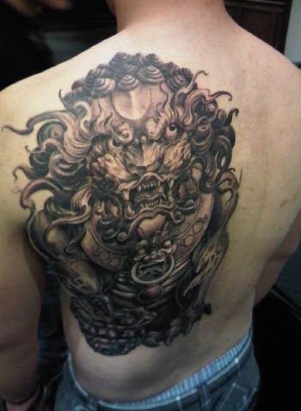 男士后背黑白霸气狮子纹身图案_后背纹身图案大全_纹身图吧