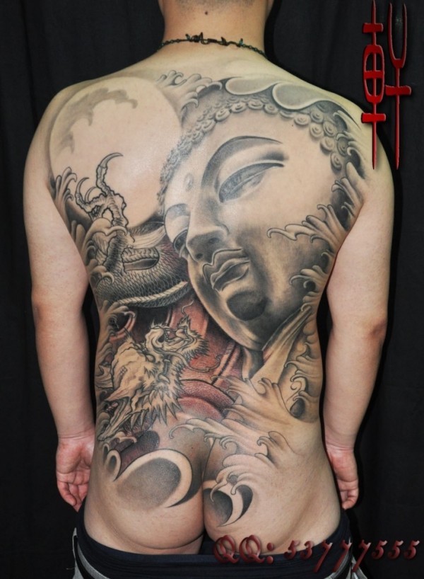 男士背部满背佛像的纹身图案_后背纹身图案大全_纹身图吧