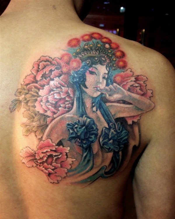 男士后背彩色花旦个性纹身图案_后背纹身图案大全_纹身图吧