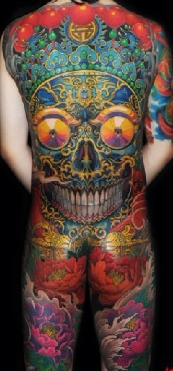 笑里藏刀的骷髅图案_后背纹身图案大全_纹身图吧
