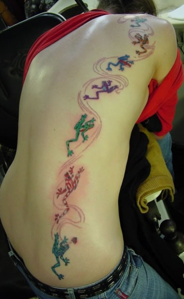 青蛙纹身图案,后背彩色青蛙纹身图后背上串连_后背纹身图案大全_纹身图吧