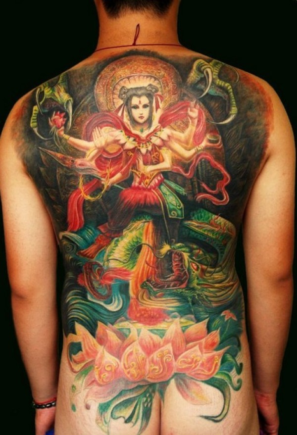 满后背莲花童子哪吒纹身图彩绘哪吒纹身图案_后背纹身图案大全_纹身图吧