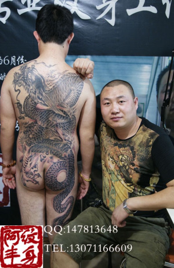 阿丰纹身师与刚完成的后背作品留影纪念每一款_后背纹身图案大全_纹身图吧