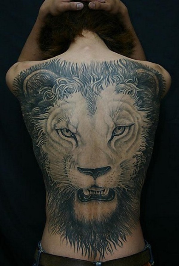 满后背狮王图案纹身,不愧是百兽之王_后背纹身图案大全_纹身图吧