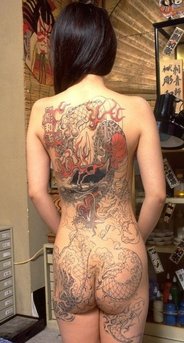 欣赏几款女生后背龙纹身半成品,上色处理中_后背纹身图案大全_纹身图吧
