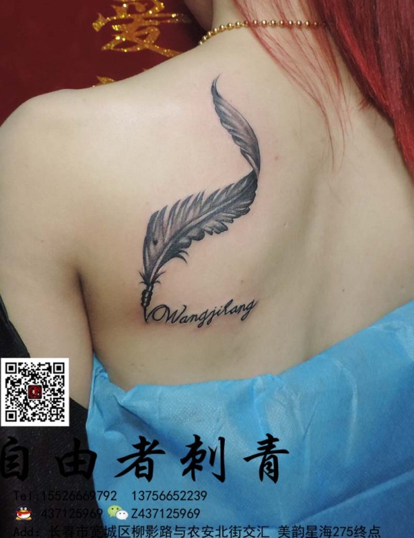 侧背素色羽毛纹身刺青图_后背纹身图案大全_纹身图吧