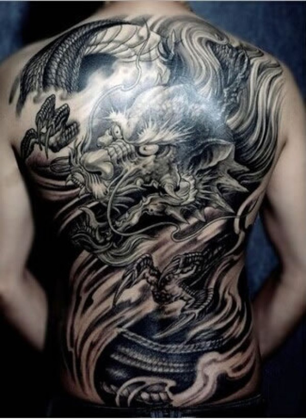 满背半甲龙经典纹身图案欣赏满背半甲龙纹身图_后背纹身图案大全_纹身图吧