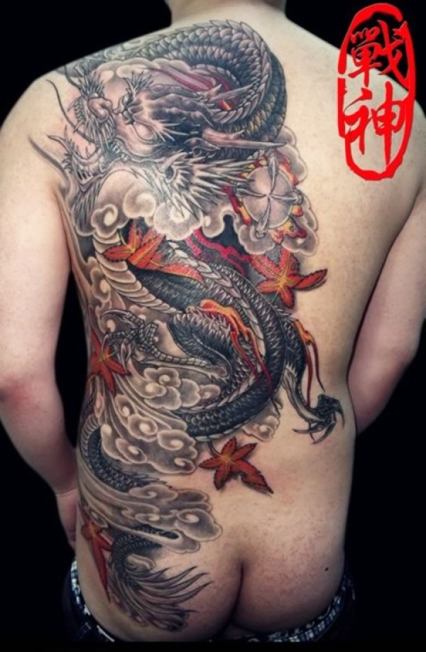 战神刺青做的半背龙抬头纹身_后背纹身图案大全_纹身图吧