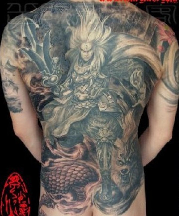 神话人物二郎神降妖图案纹身看着这纹身,就有_后背纹身图案大全_纹身图吧