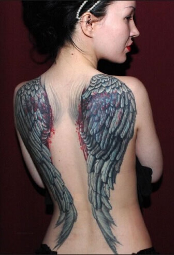 美女后背精美的翅膀图案纹身_后背纹身图案大全_纹身图吧