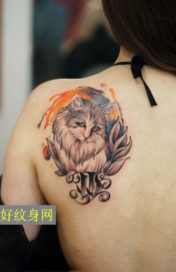 侧背处可爱的小猫咪纹身图_后背纹身图案大全_纹身图吧