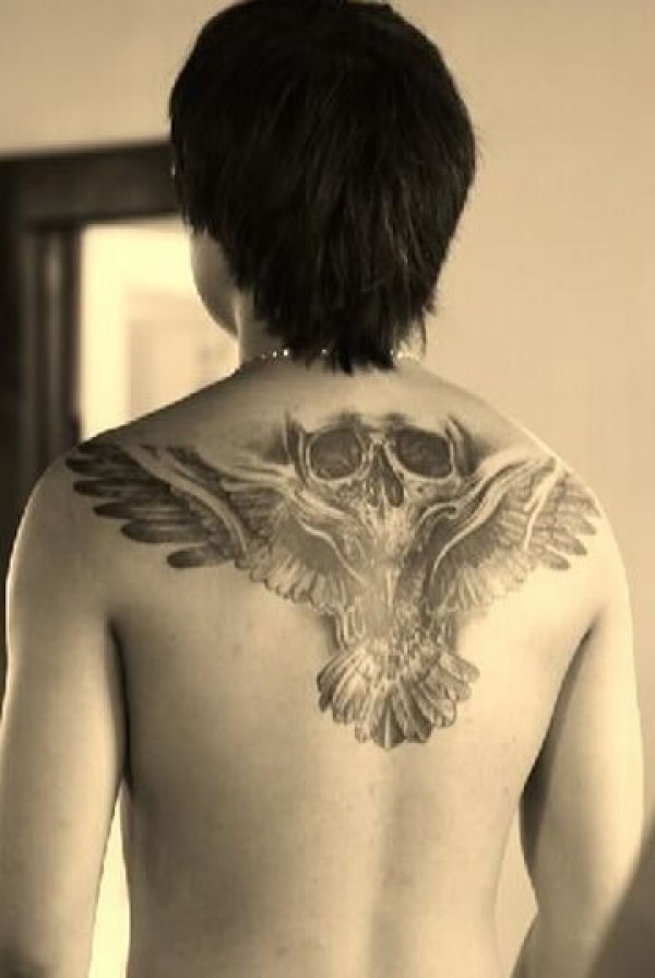 后背翅膀骷髅头图案纹身经典骷髅头主题纹身图_后背纹身图案大全_纹身图吧