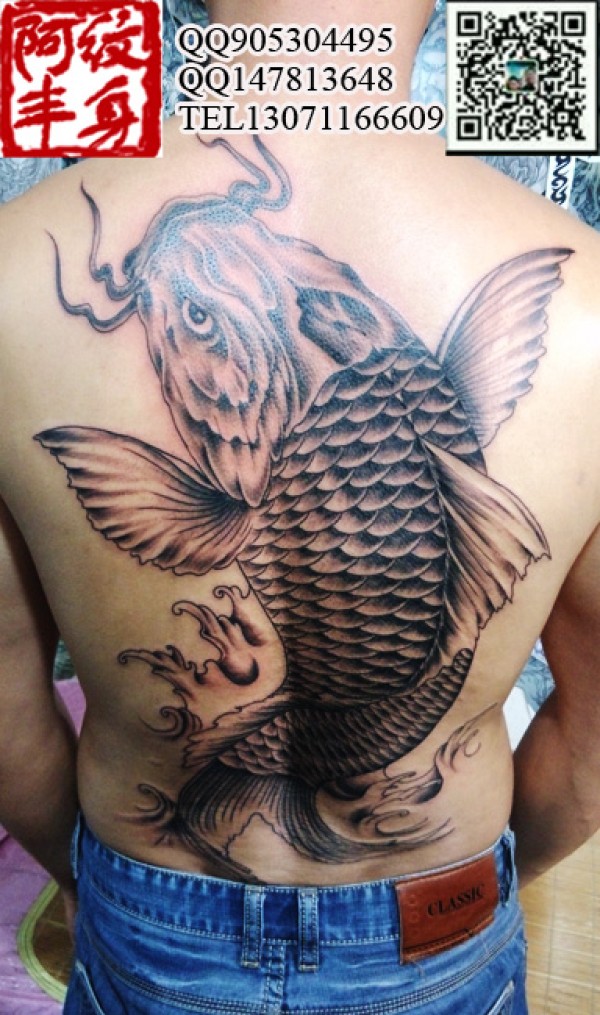 后背观音坐鲤鱼纹身图案满背鲤鱼图案_后背纹身图案大全_纹身图吧