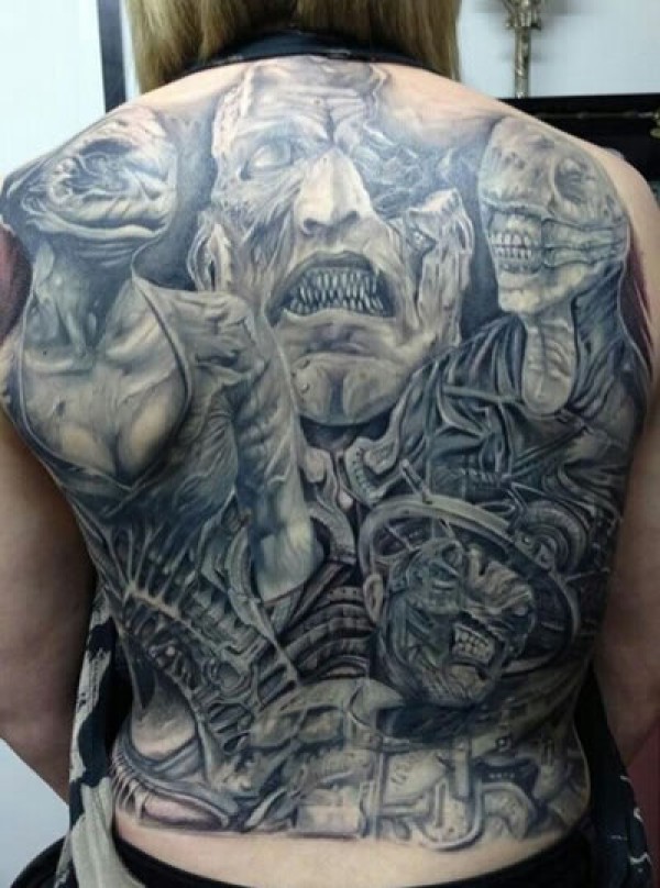 恐怖至极的后背恶魔纹身图案丧尸图案满背纹身_后背纹身图案大全_纹身图吧