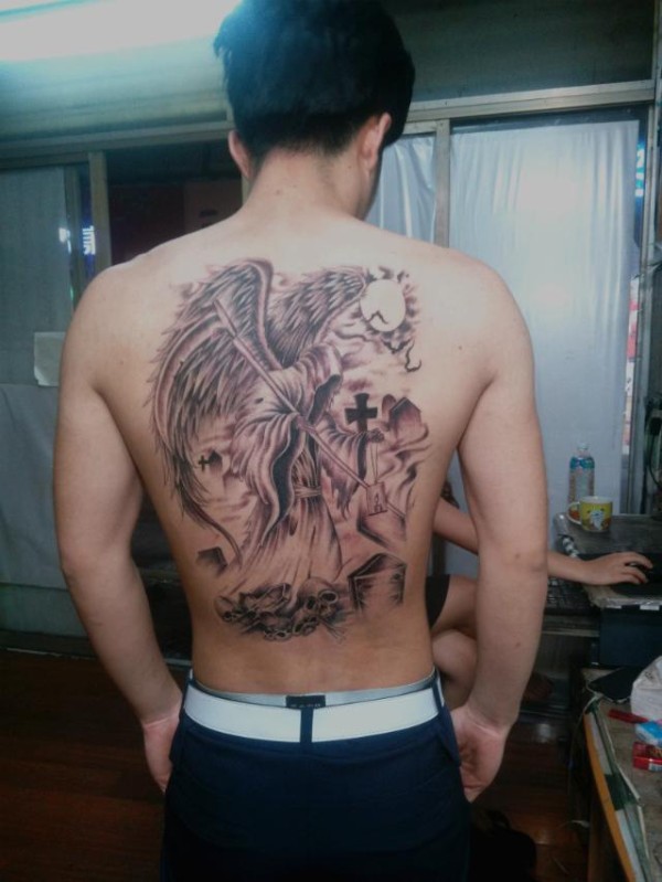 满背迷雾中显现的死神图案纹身九龙堂推荐的后_后背纹身图案大全_纹身图吧