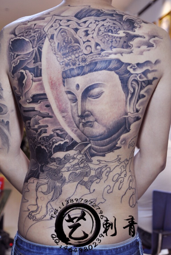 庄严的佛像图案满背纹身作品带吉祥神兽图案的_后背纹身图案大全_纹身图吧
