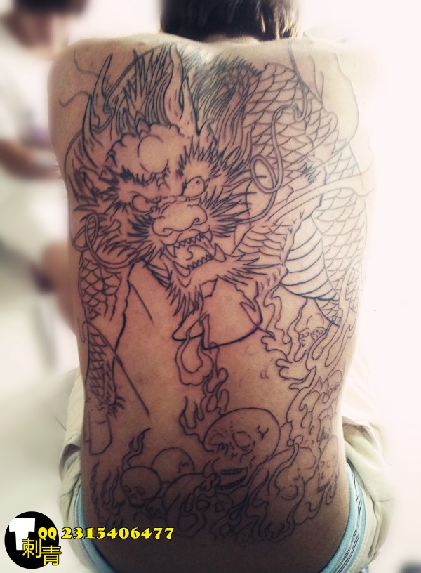 满背单线龙纹身图案欣赏_后背纹身图案大全_纹身图吧