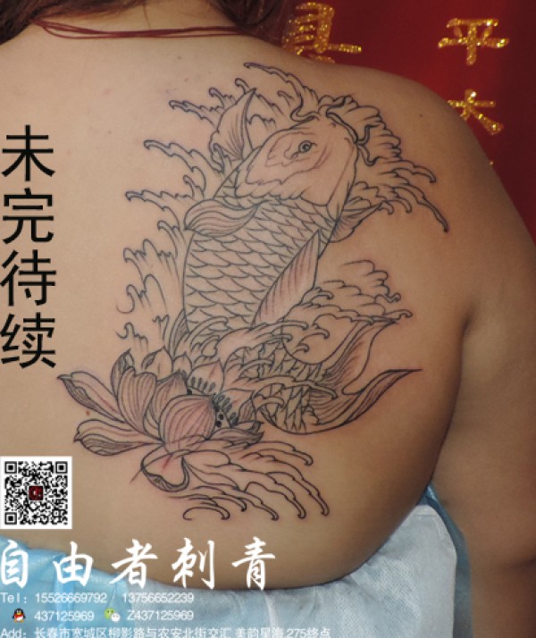 后背鲤鱼纹身图案割线工艺期待纹身图案完成以_后背纹身图案大全_纹身图吧