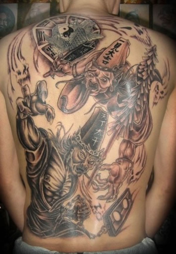 想发财就纹满背黑白无常纹身黑白无常加八卦图_后背纹身图案大全_纹身图吧