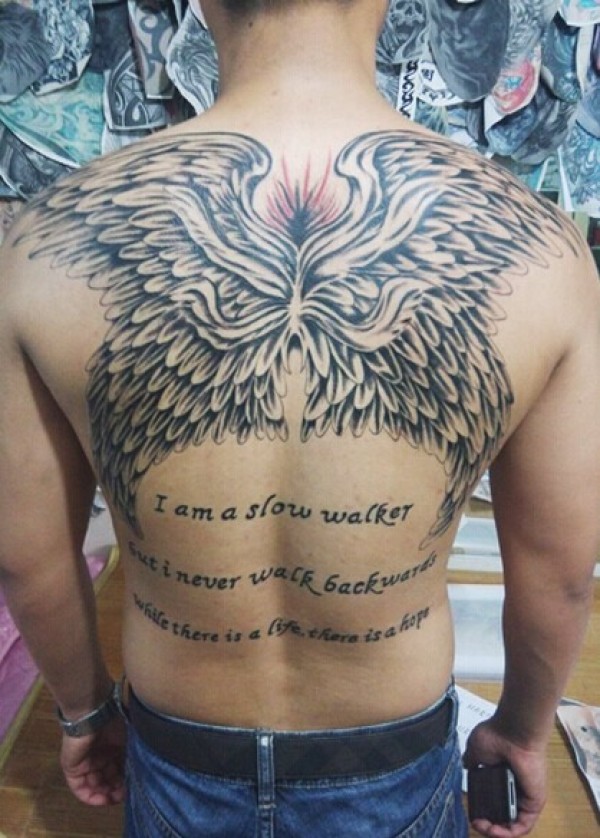后背风格迥异的翅膀纹身图流云状态的翅膀图案_后背纹身图案大全_纹身图吧