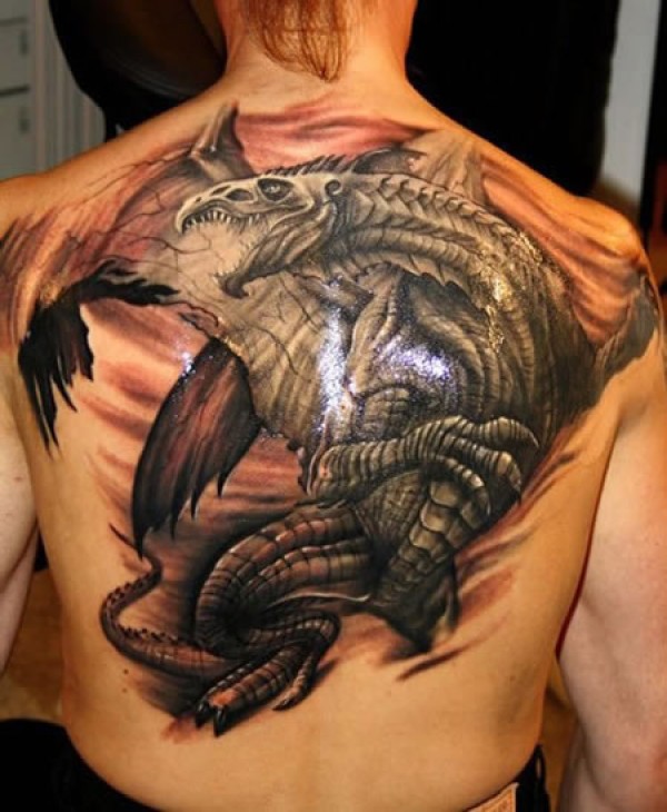后背上凶悍无比的翼龙纹身凶猛的巨型翼龙图案_后背纹身图案大全_纹身图吧