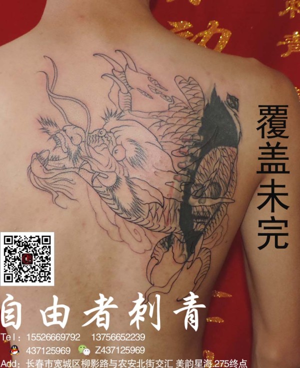 后背纹身遮盖艺术展示图龙纹身遮盖骷髅头_后背纹身图案大全_纹身图吧