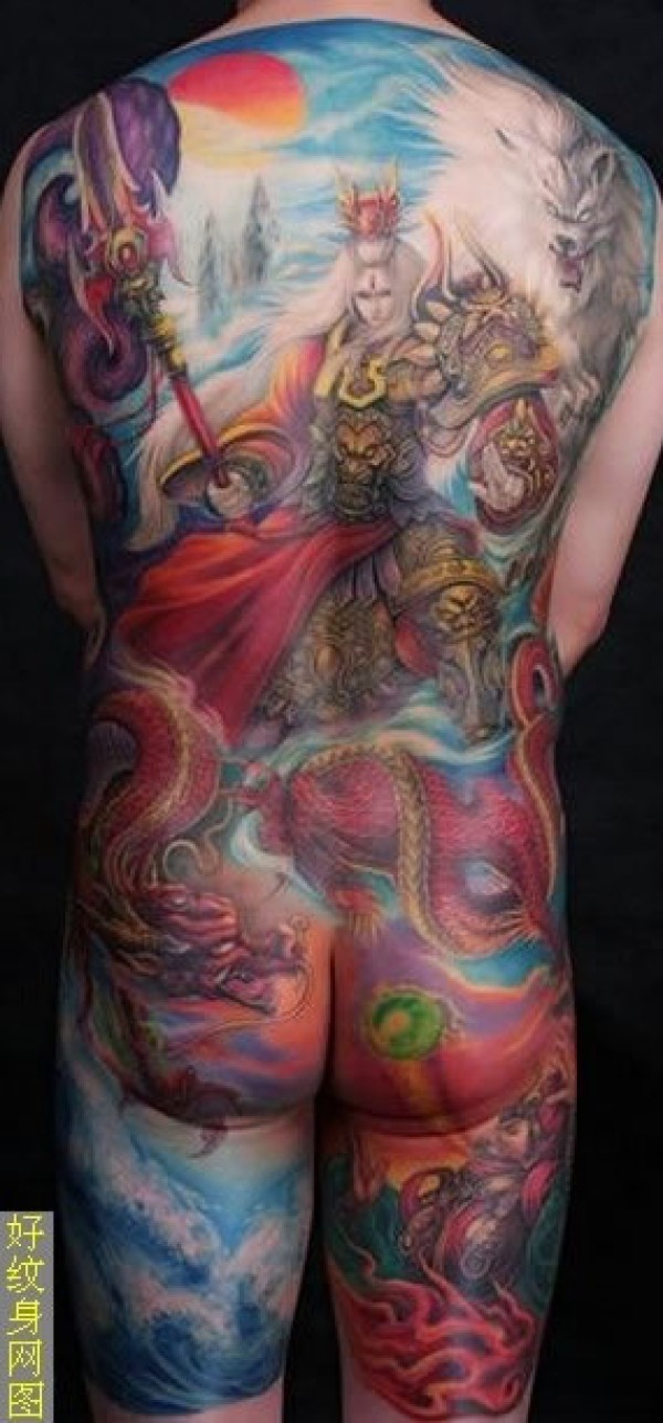 后背上浓色二郎神君纹身图案推荐威风四面的二_后背纹身图案大全_纹身图吧