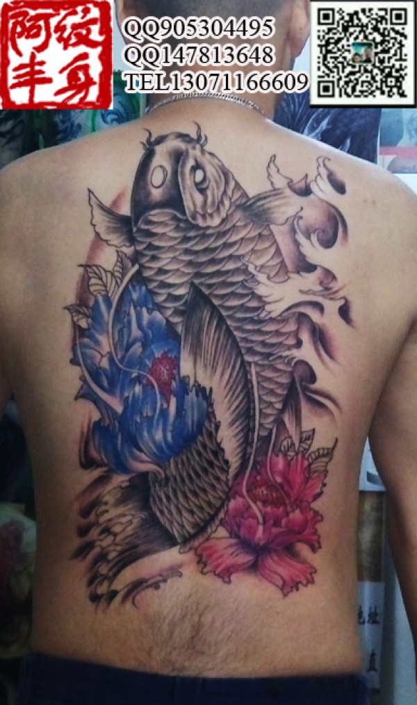 鲤鱼主图纹身,后背鲤鱼加花纹身图案大全后背_后背纹身图案大全_纹身图吧