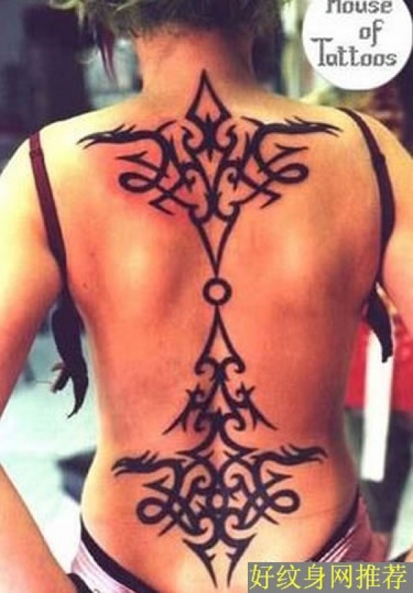 美女后背上傲人的大面积图腾纹身推荐美女后背_后背纹身图案大全_纹身图吧
