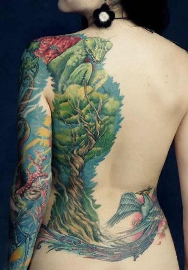 美女后背艳丽的彩色纹身图案大全后背彩色纹身_后背纹身图案大全_纹身图吧