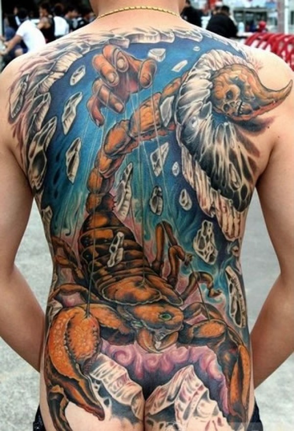 满背大型蝎子纹身图案,非常霸道的纹身图满背_后背纹身图案大全_纹身图吧