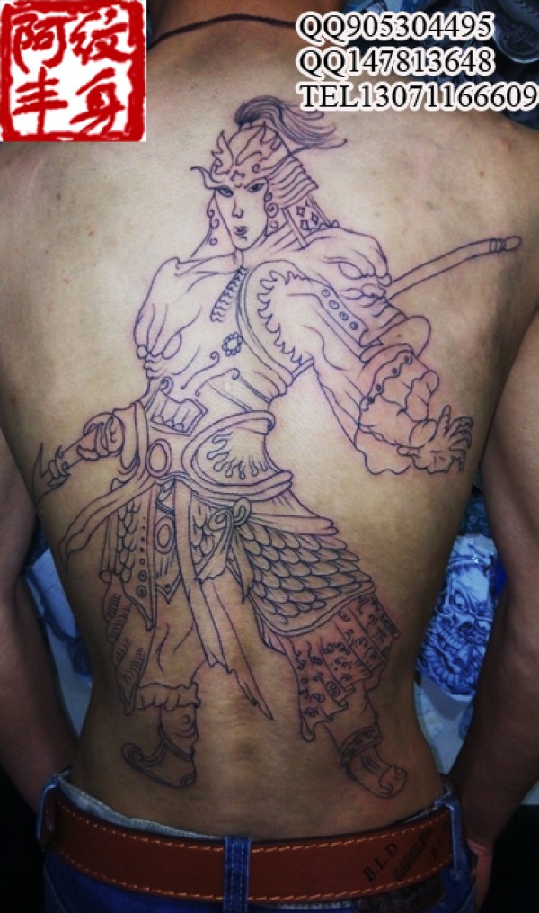 后背单线纹身图,赵云图案线条纹身阿丰最新完_后背纹身图案大全_纹身图吧