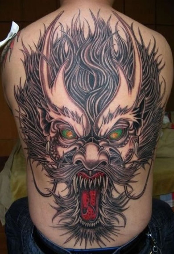 满背大型龙头纹身,不言而喻的霸气纹身图看到_后背纹身图案大全_纹身图吧