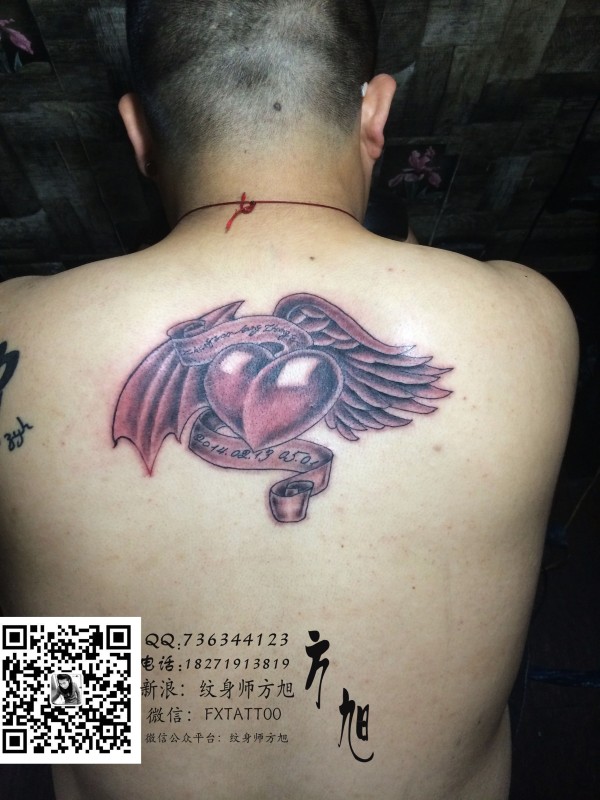 后背彩色纹身,纹身师方旭作品推荐后背上的翅_后背纹身图案大全_纹身图吧