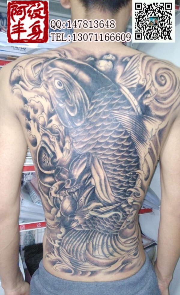 难度较大的纹身作品,满背覆盖的鲤鱼纹身图北_后背纹身图案大全_纹身图吧