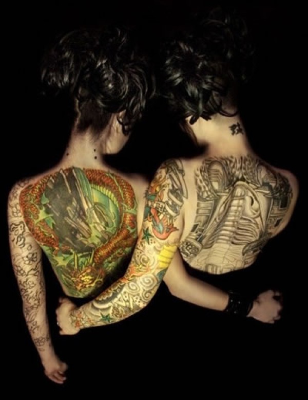 美女的后背纹身也能体现出力量美姐妹俩一起秀_后背纹身图案大全_纹身图吧