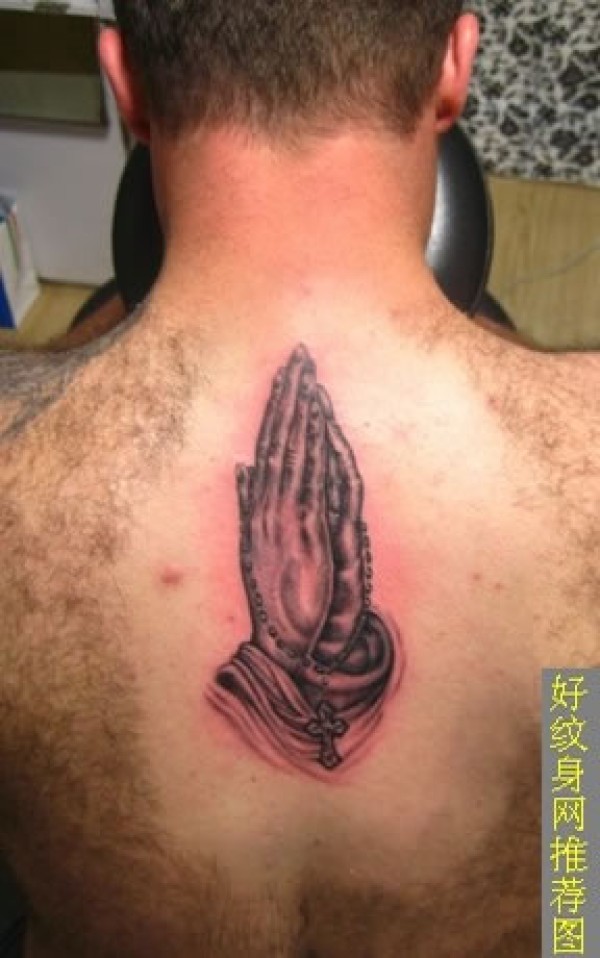 男生后背各式各样的祈祷之手纹身图案外国友人_后背纹身图案大全_纹身图吧