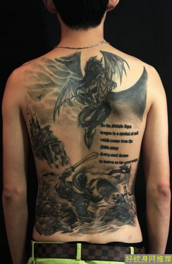 后背上的战争场景图案纹身作品古代战争场景图_后背纹身图案大全_纹身图吧