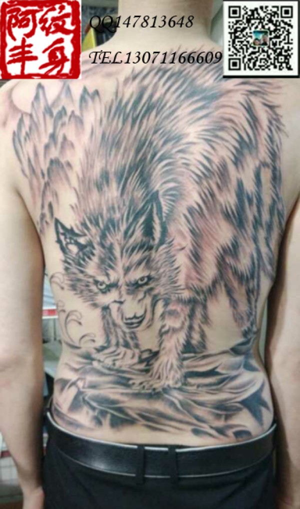 后背上霸气的孤狼纹身图案全身毛发直立的孤狼_后背纹身图案大全_纹身图吧