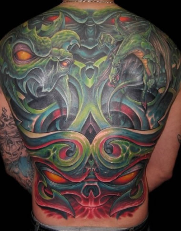 满背彩色的大魔头纹身图片大全掺杂钢铁元素的_后背纹身图案大全_纹身图吧