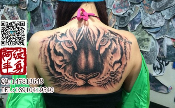 美女后背纹身虎头图案纹身女生后背虎头纹身作_后背纹身图案大全_纹身图吧
