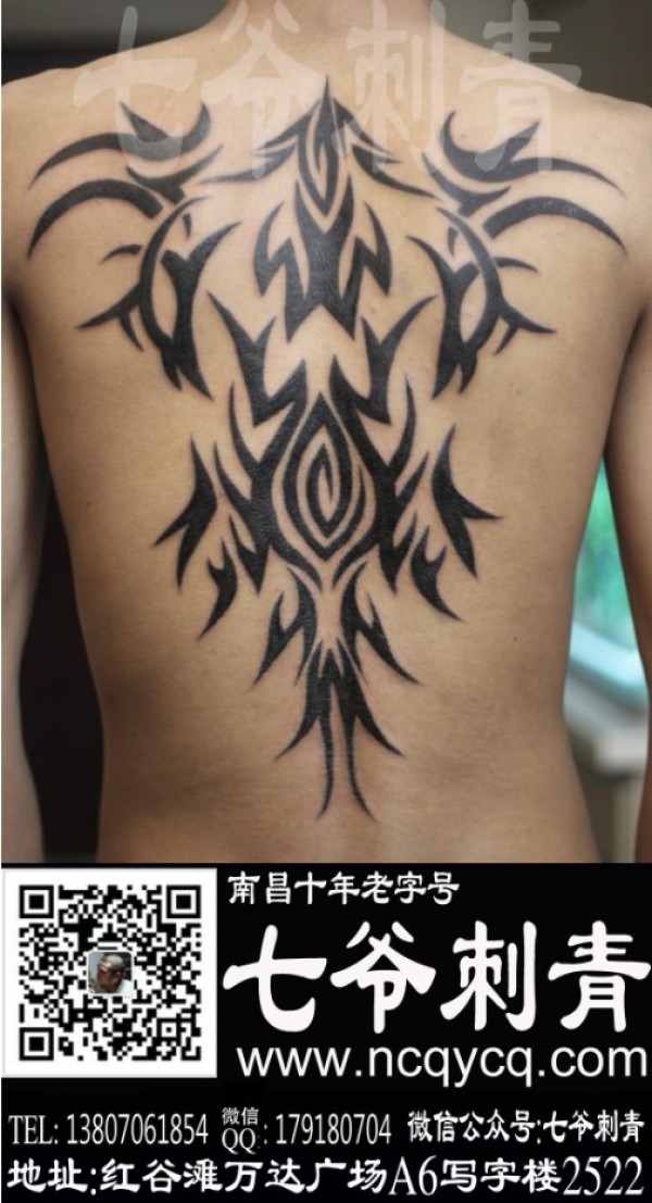 满背创意图腾纹身图案圆弧刃形叠加的图腾纹身_后背纹身图案大全_纹身图吧