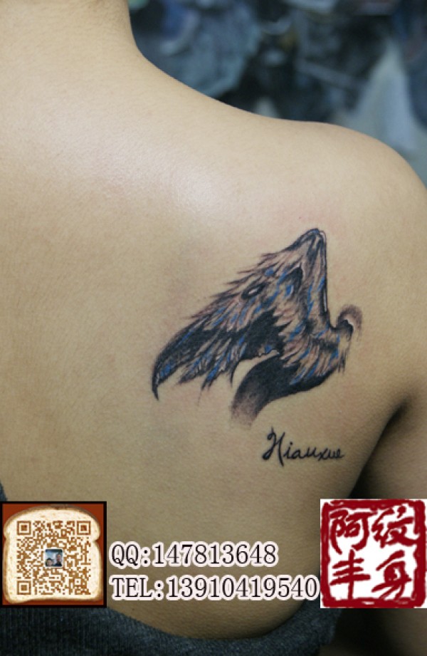 女生侧背上的翅膀纹身图片侧背彩色点缀翅膀图_后背纹身图案大全_纹身图吧