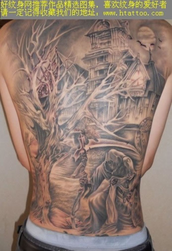 后背幽冥界主题纹身图案推荐后背素色幽冥界场_后背纹身图案大全_纹身图吧