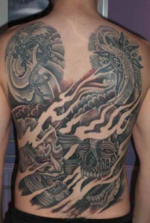 后背诡异境界纹身图案组合纹身图案,骷髅头、_后背纹身图案大全_纹身图吧