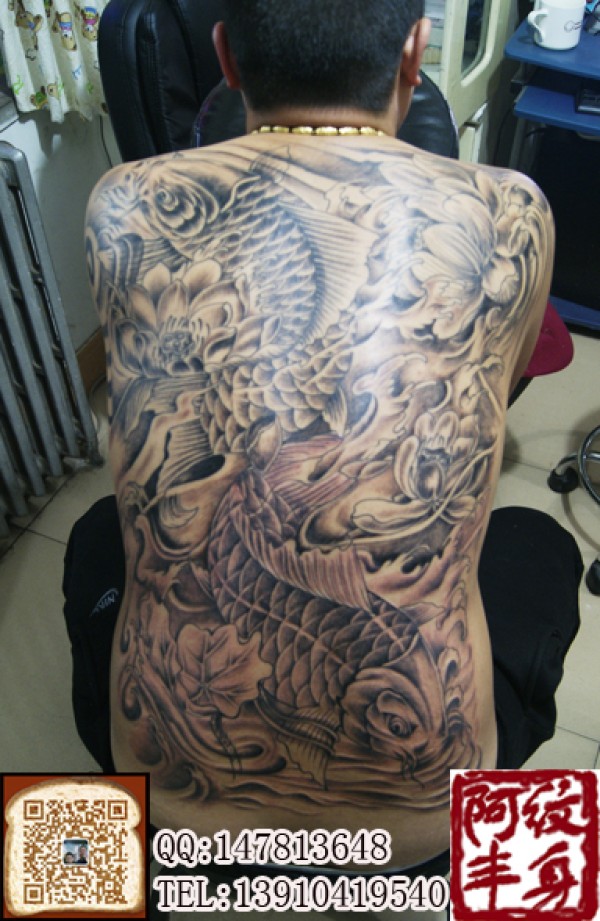 满背素色层次感非常强烈的鲤鱼纹身纹身中有嫣_后背纹身图案大全_纹身图吧
