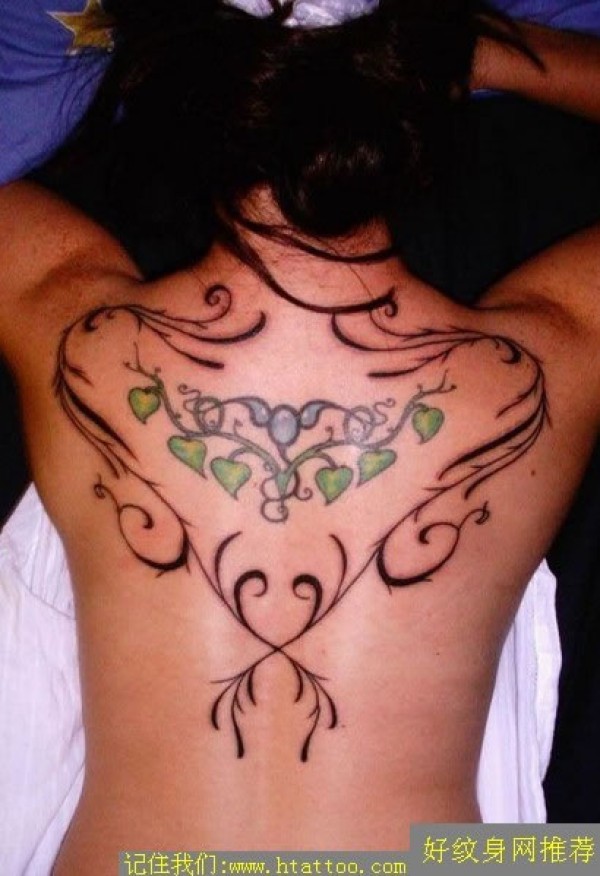 女生后背代表爱情的爱心图案纹身女生后背藤蔓_后背纹身图案大全_纹身图吧