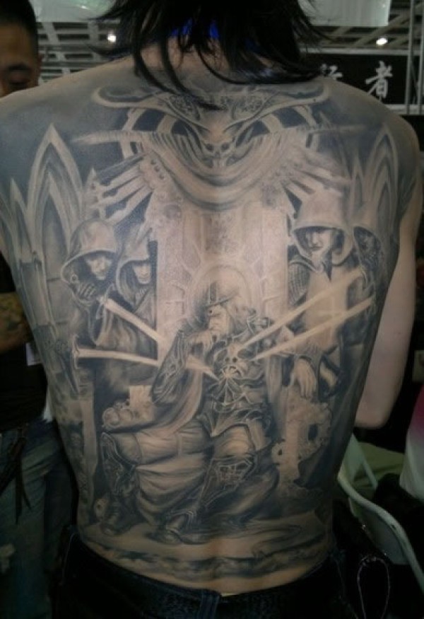 西方神话世界的人物图案纹身满背素色上帝纹身_后背纹身图案大全_纹身图吧